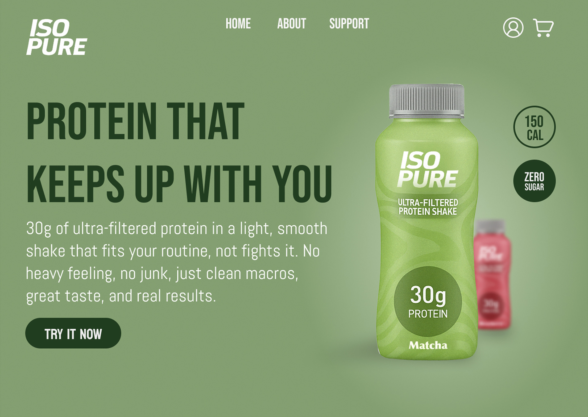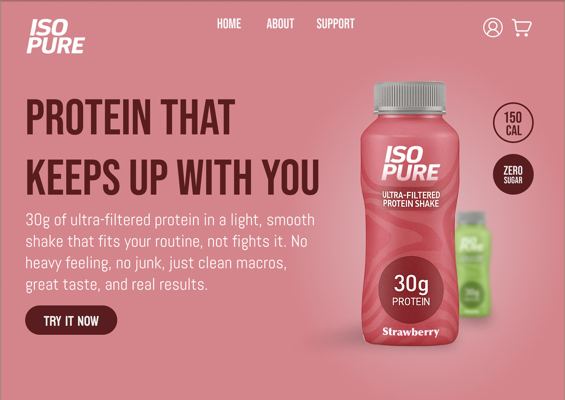 I designed a responsive e-commerce landing page for ISOPURE, as well as a new bottle design concept, structured around clarity, trust, and high-conversion UX patterns. The layout uses bold typography, clear hierarchy, high-contrast CTA buttons, and simplified nutrition callouts to support quick scanning and purchase intent.
