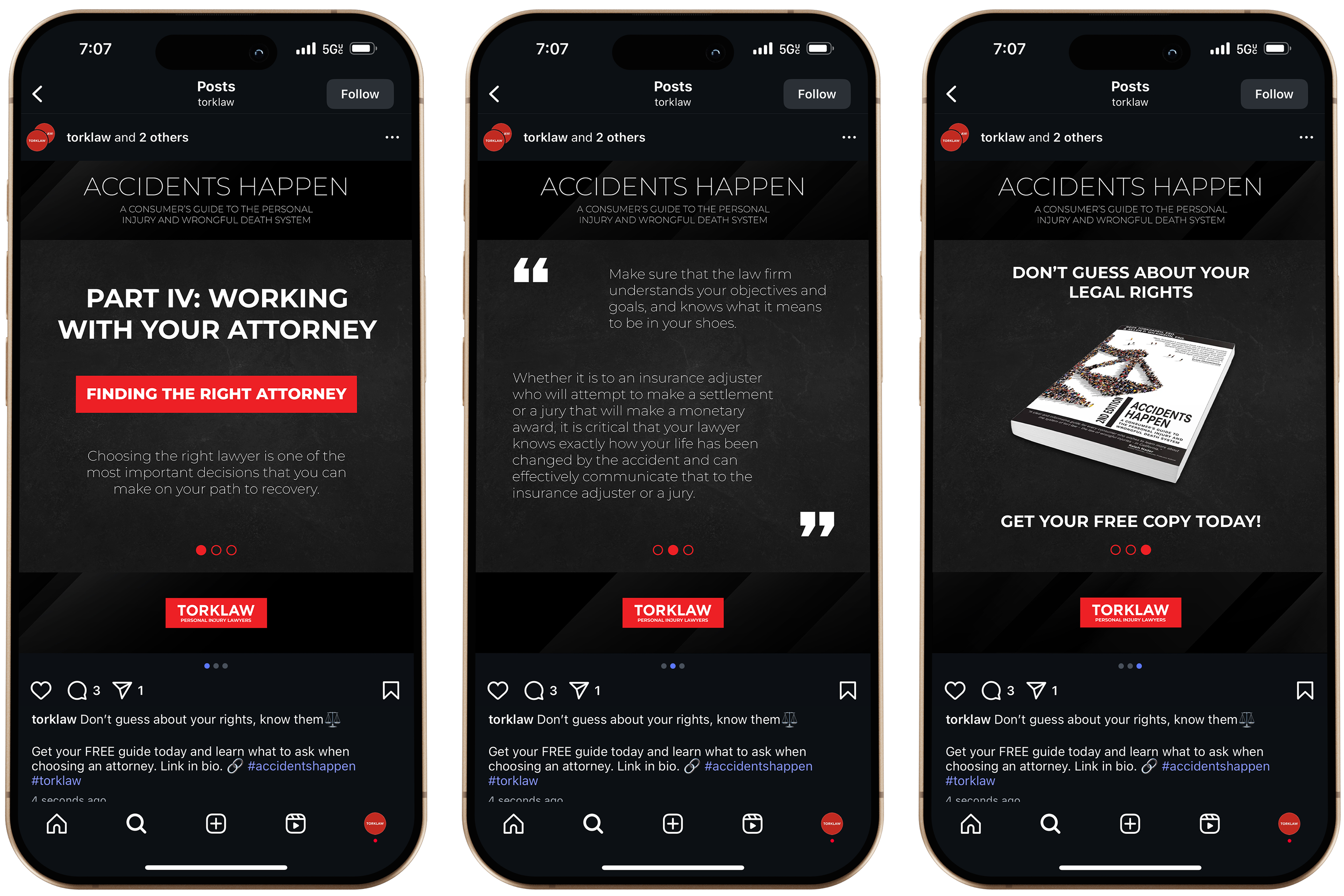 I designed everything from large-scale event banners, apparel, meta ads, case value posts, retargeting campaigns, and promotional concepts such as boxing-inspired graphics. Each piece avoided the clichés of accident imagery and instead used strong, strategic design to capture attention while staying professional and on-brand.